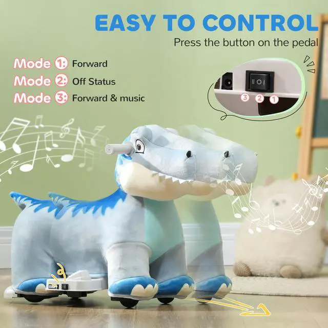 Interactive Features: Equipped with music and forward functionality at a safe speed of 1.2 mph, this electric ride on a horse allows toddlers to control direction with a handle, enhancing motor skills.