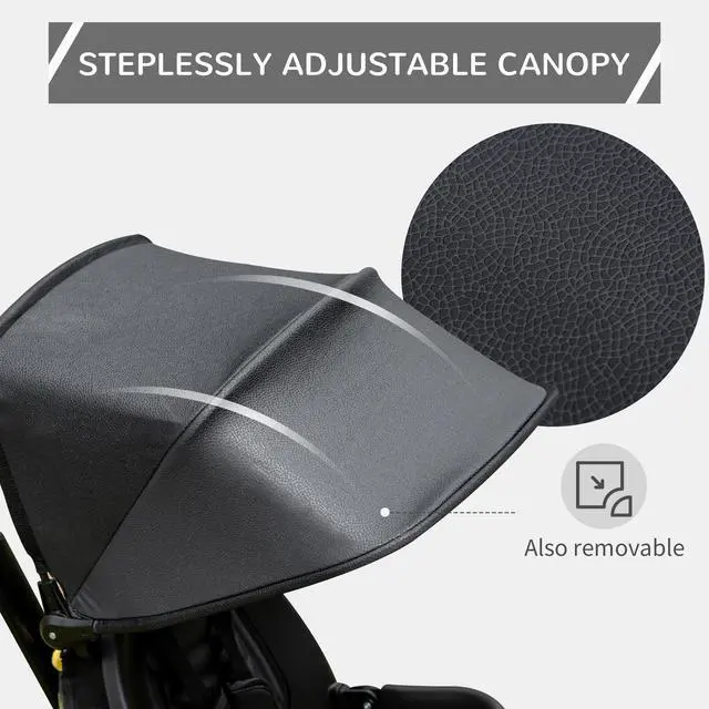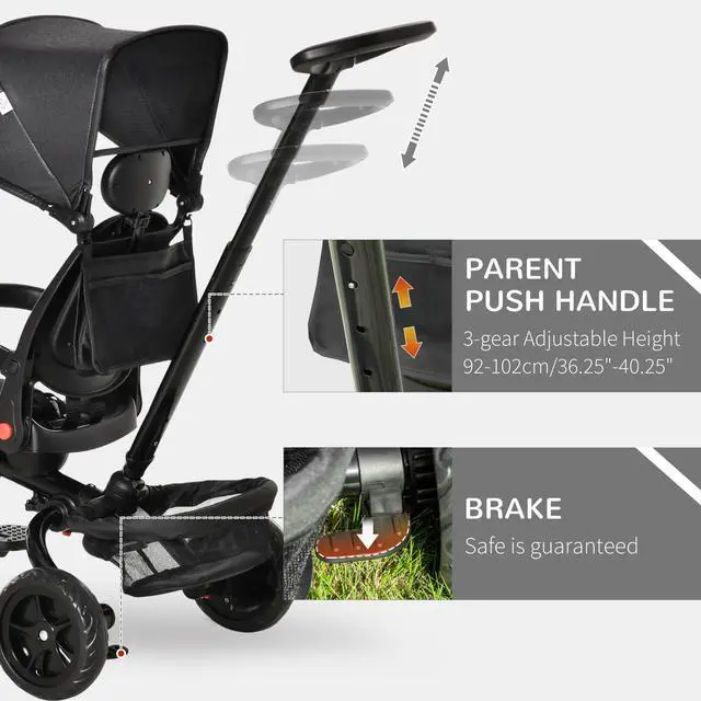 Fully Adjustable: The trike's removable parent push handle used for steering is 3-gear adjustable to suit parents of different heights. The flexible and removable canopy provides a shaded area. The foldable footrest and backrest's adjustable angle provide your child with a comfortable seating experience.