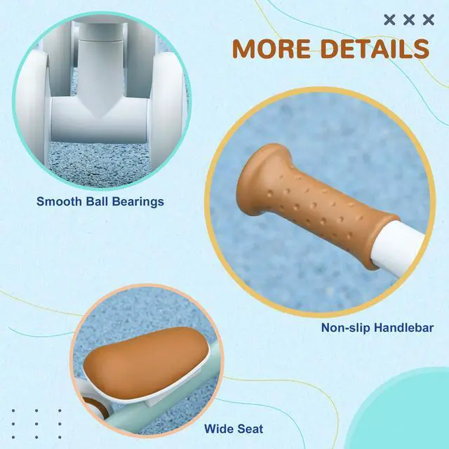 Quiet Playtime: Equipped with silent tires, this baby balance bike is suitable for indoor and outdoor use, ensuring a fun yet peaceful space for kids and family.