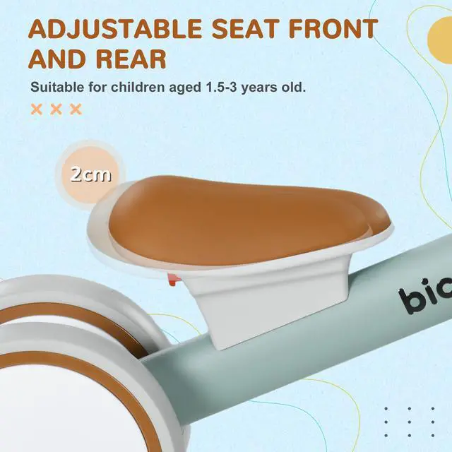 Adjustable Comfort: The seat of this baby bike adjusts 0.8" front to rear, accommodating growth from ages 1 to