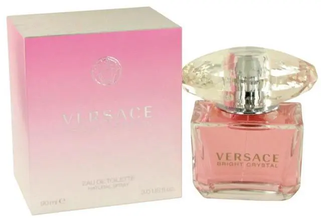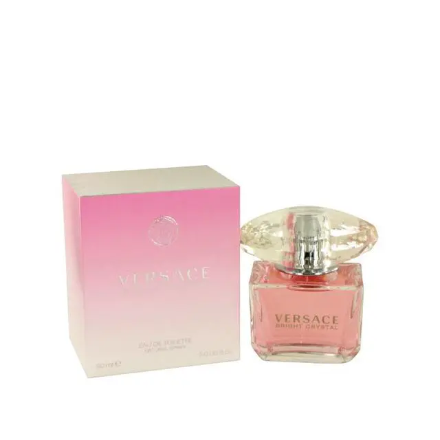 Bright Crystal by Versace Eau De Toilette Spray 3 oz for Women A sweet floral scent with fruity, musky accents. With scents of pomegranate, yuzu, frosted accord, peony, magnolia, lotus, plant amber, musk, and mahogany.