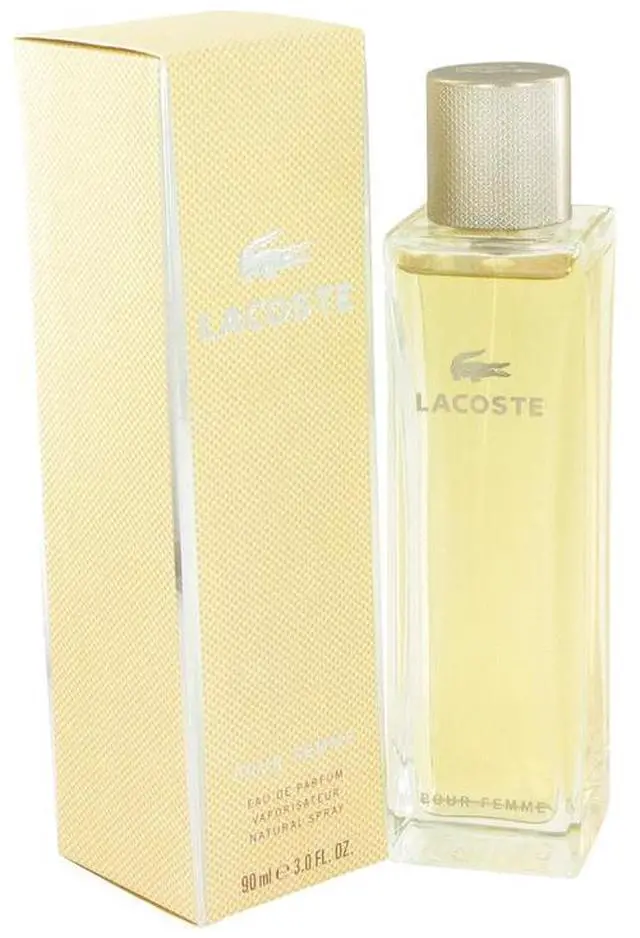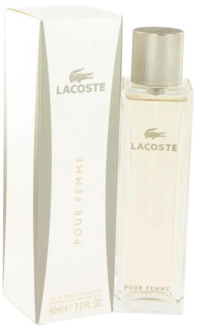 Lacoste Pour Femme by Lacoste Eau De Parfum Spray 3 oz for Women Lacoste Pour Femme is a gentle, subtle floral fragrance for women, launched in 2003. Elegant and sophisticated, Lacoste Pour Femme is a soft blend of flowers with just a hint of spice. A beautiful fragrance for women, that is perfect for romantic wear.