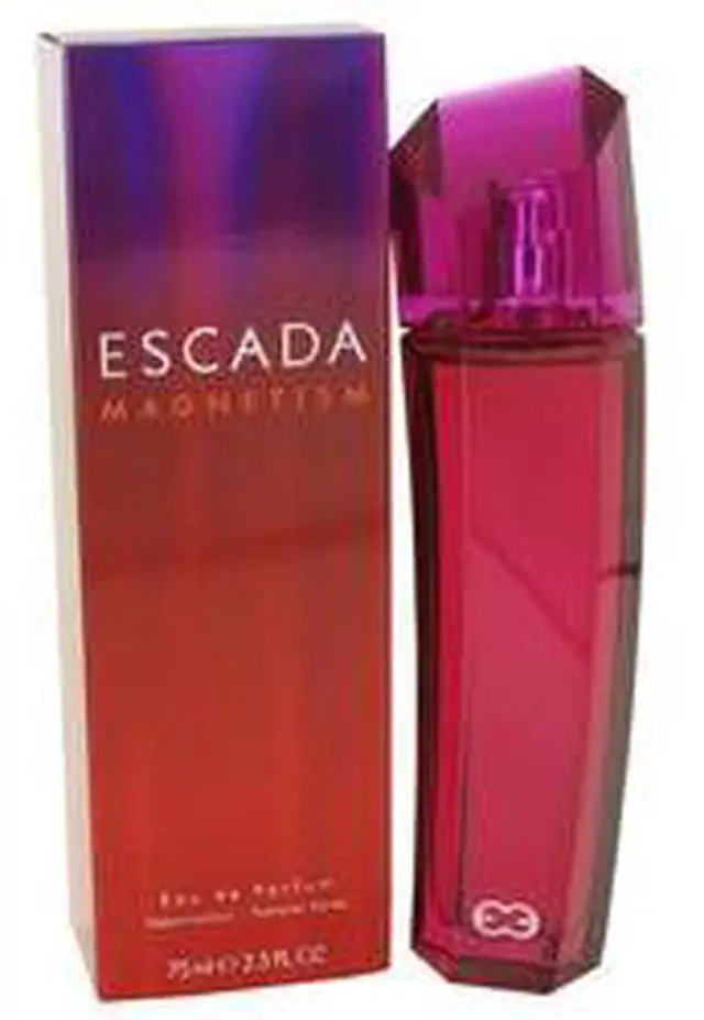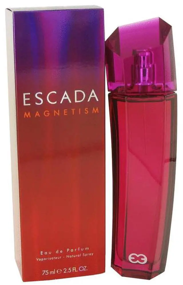 Escada Magnetism by Escada Eau De Parfum Spray 2.5 oz for Women Introduced in 2003, Escada Magnetism by the design house of Escada is a sharp oriental floral aroma for women. A beautiful blend of greens with fresh fruits and leaves, and a hint of musk, and patchouli. Escada Magnetism is recommended for casual wear.