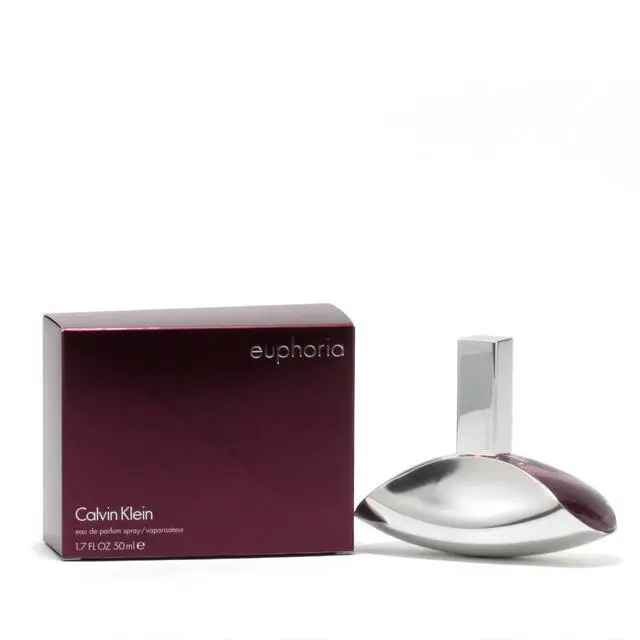 Euphoria by Calvin Klein Eau De Parfum Spray 1.7 oz for Women Euphoria by Calvin Klein was introduced in 2005 as a fun, enticing scent for women. The beautiful fragrance starts off with pomegranate, persimmon, and a lovely lush green accord. The heart then blends into a sensual lotus blossom, black orchid which then