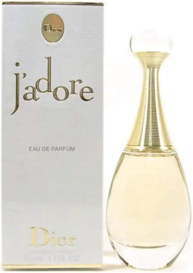J'Adore perfume is a glamorously feminine scent by Christian Dior that beautifully blends elegant florals with fresh fruits, wood, and earthy notes. The first sniff brings an enticing mix of peach, melon, pear, bergamot, magnolia, and mandarin orange. The heart of Dior J'Adore perfume consists of lily of the valley, tuberose, orchid, rose, jasmine, violet, plum, and freesia. Warm vanilla, aromatic cedar, earthy musk, and juicy blackberry form the base of J'Adore by Dior, a perfume with moderate sillage and high longevity.