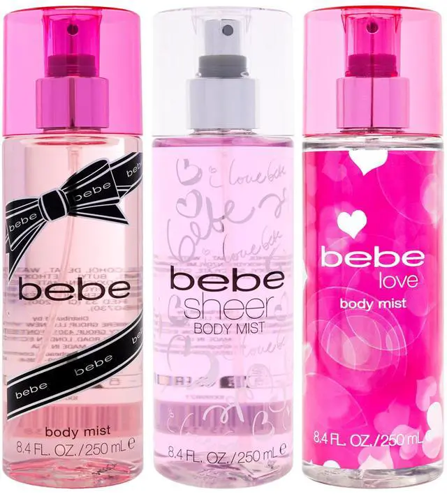 • Bebe Kit by Bebe for Women - 3 Pc Kit 8.4oz Body Mist - Bebe Love, 8.4oz Body Mist - Bebe Silver, 8.4oz Body Mist - Bebe Sheer