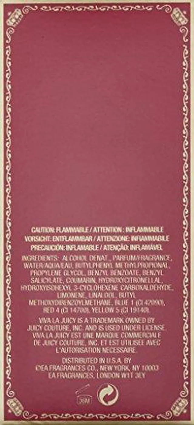 Use: casualViva La Juicy perfume for women is a feminine fragrance that is both subtle and refreshing. The floral blend of gardenia honeysuckle and jasmine smells delicate and soft giving off an aroma that is flirty and fun. These notes mingle expertly with caramel vanilla praline and sandalwood to create a perfectly balanced fragrance in which no one scent is dominant or overpowering. Introduced by Juicy Couture in 2008 this casual perfume is understated and suitable for the office but still daring enough to turn a few heads.