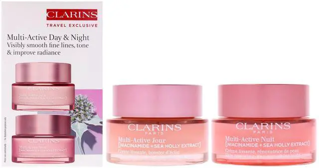 Multi-Active Partners Kit by Clarins for Unisex - 2 Pc 1.7oz Multi-Active Day Early Wrinkle Correction Cream, 1.7oz Multi-Active Night Youth Recovery Comfort Cream