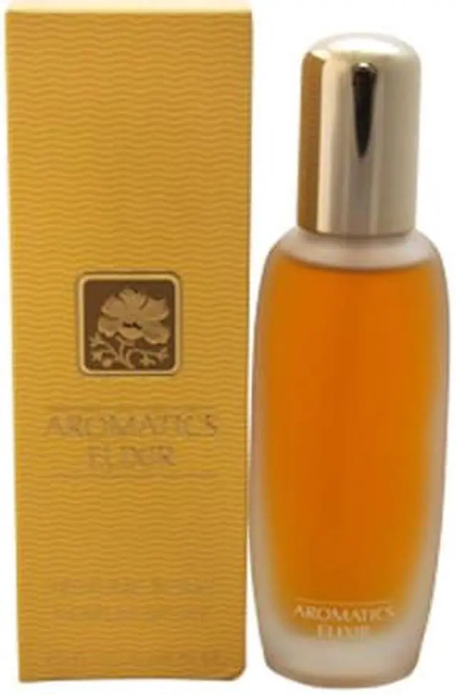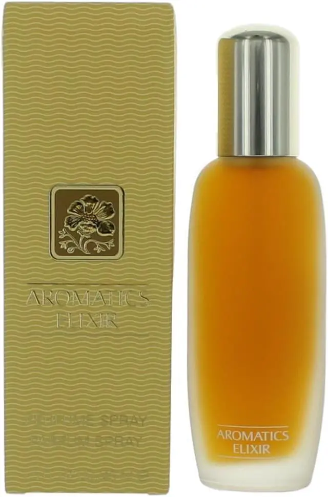 Launched by the design house of Clinique in 1971 AROMATICS ELIXIR is classified as a refreshing woody arid fragrance. This feminine scent possesses a blend of fresh and woodsy with oakmoss white jasmine chamomile and patchouli. It is recommended for daytime wear.