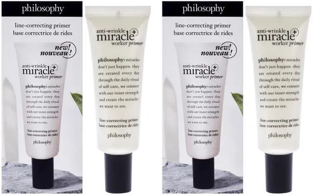 Anti-Wrinkle Miracle Worker Primer Plus Line-Correcting Primer by Philosophy for Women - 0.9 oz Primer - Pack of 2
