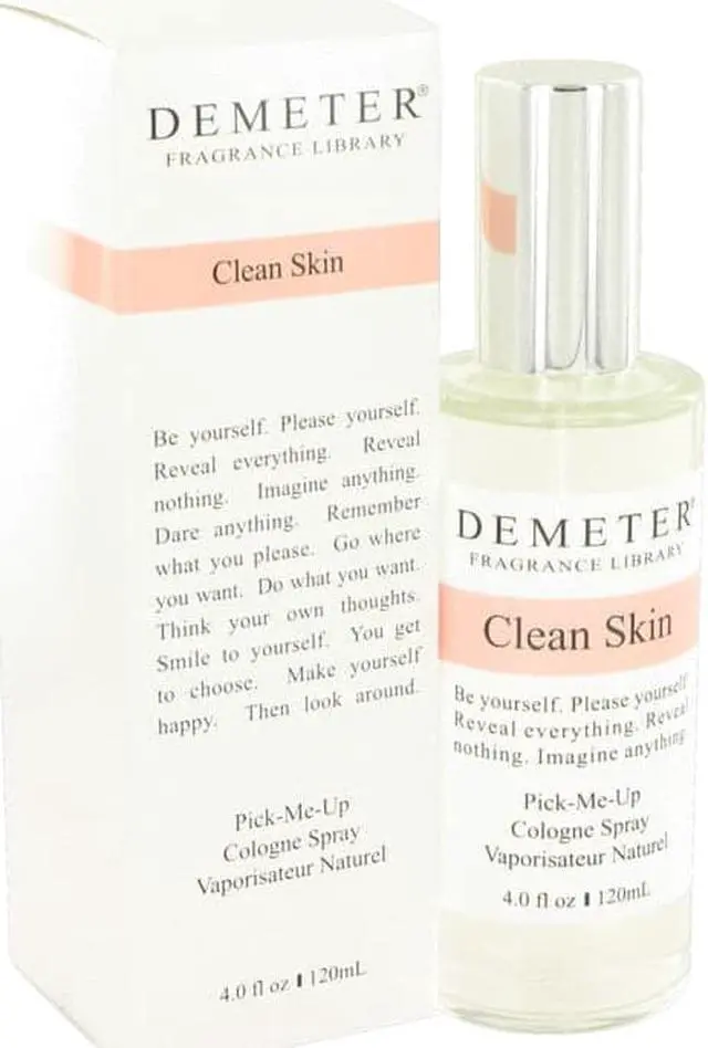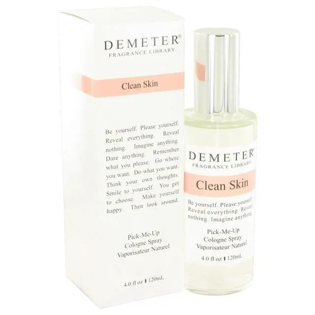 Demeter’ s 2012 fragrance Demeter Clean Skin recreates the scent of having just stepped out of a refreshing shower. The bright top notes contain tart bursts of lemon and bergamot balanced by the sweet citrus of orange. Middle notes include the fleshy scent of peach paired with the distinctly feminine aroma of rose.