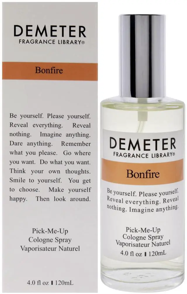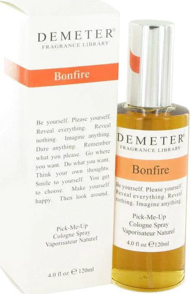 Wrap yourself in the intoxicating aura of a cool autumn day with Demeter Bonfire. Released by fragrance house Demeter in 2009 this smoky perfume conjures images of colorful orange red and yellow maple tree leaves filling the tree-lined sky and gently falling on the path ahead. Hints of sweet apple cider comfort the senses as the powerful aroma of a burning bonfire creates a sensual and alluring warmness that makes one yearn to get closer.