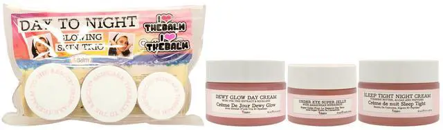• Day To Night Glowing Skin Trio by the Balm for Women - 3 Pc 1oz Dewy Glow Day Cream, 0.5oz Under Eye Super Jelly, 1oz Sleep Tight Night Cream