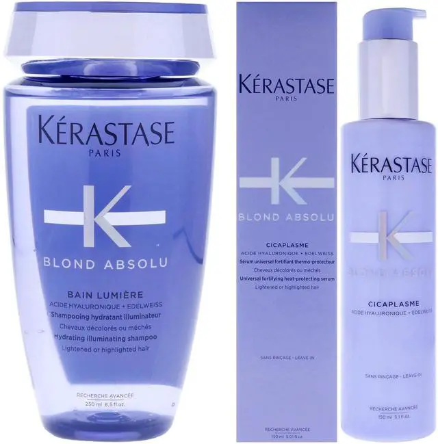 • Blond Absolu Kit by Kerastase for Unisex - 2 Pc Kit 8.5oz Blond Absolu Hydrating Illuminating Shampoo, 5.1oz Blond Absolu Cicaplasme Serum