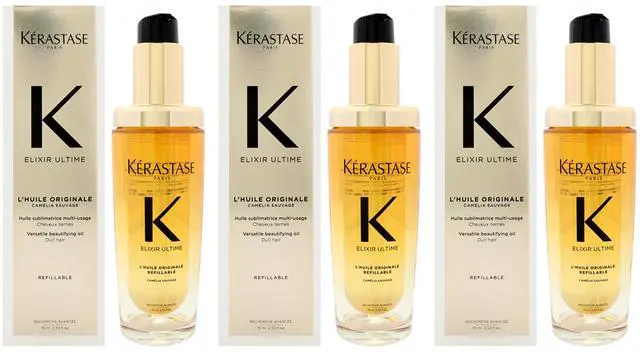 • Elixir K Ultime Versatile Beautifying Oil by Kerastase for Women - 2.53 oz Oil (Refillable) - Pack of 3