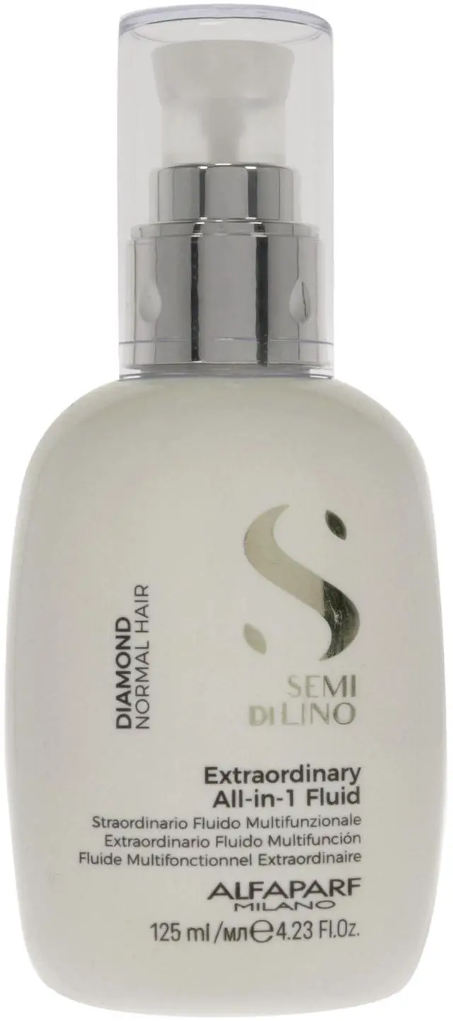 Extraordinary All-In-1 Fluid is a leave-in fluid that gives extreme, instant shine, detangles hair, helps protect against UV rays, protects the cosmetic color, prevents split ends, controls frizz, counteracts the effect of humidity, seals the cuticles, makes hair soft and silky and easier to brush.