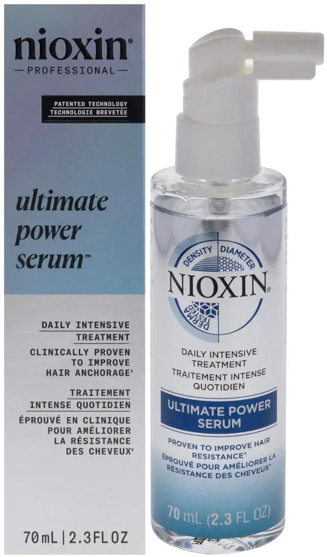 Nioxin Professionals Ultimate Power Serum is a leave-on scalp treatment designed for daily use. Its clinically proven to strengthen hair from the root and increase hair anchorage, resulting in visibly thicker hair after the first use.
