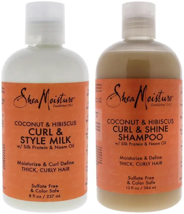 Coconut Hibiscus Curl Style Milk and Shine Shampoo Kit by Shea Moisture for Unisex - 2 Pc Kit 8oz Cream, 13oz Shampoo