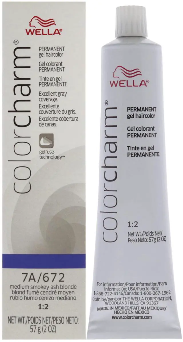 Color Charm Permanent Hair Color Gel - 7A 672 Medium Smokey Ash Blonde by Wella for Unisex - 2 oz Hair Color