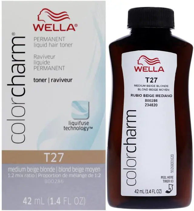 Color Charm Permanent Liquid Toner - T27 Medium Beige Blonde by Wella for Women - 1.4 oz Toner