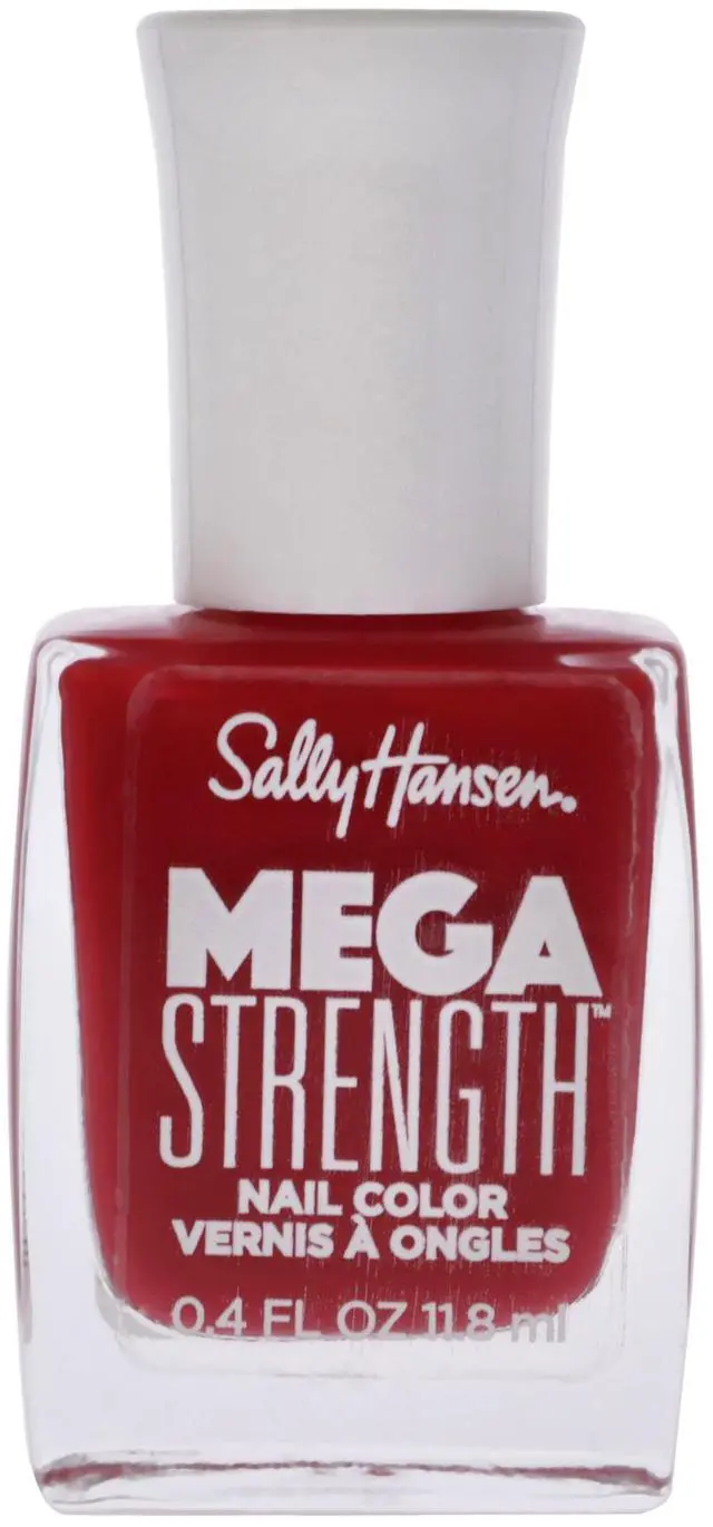 Sally hansen look and an extra boost of strength with sally hansen mega strength nail polish lacquer. Beautifies your nails with deep, rich color. Protects nails from cracking, peeling, and breaking. 2 out of 3 agree nails look stronger. Instantly healthy and stronger looking nails. Formulated with Platinum powder plus a flexible brush for easy, contoured application. For the full regimen, wear it over our Mega Strength Hardener as a base coat and Mega Strength Color.