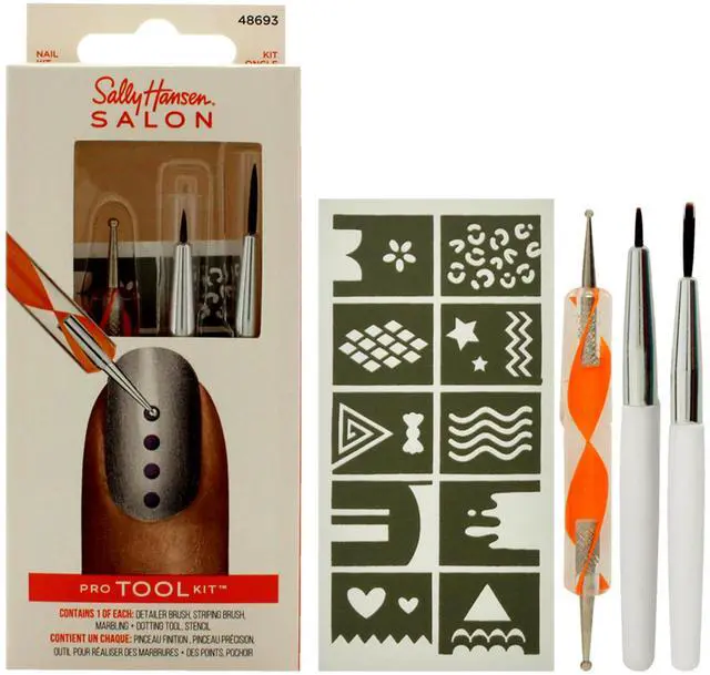 • Salon Pro Tool Kit by Sally Hansen for Women - 3 Pc Marbling Plus Dotting Tool, Detailer Brush, Striping Brush