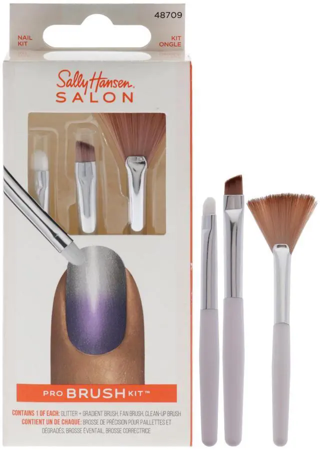 • Salon Pro Brush Kit - 48709 by Sally Hansen for Women - 3 Pc Glitter Plus Gradient Brush, Clean-Up Brush, Fan Brush