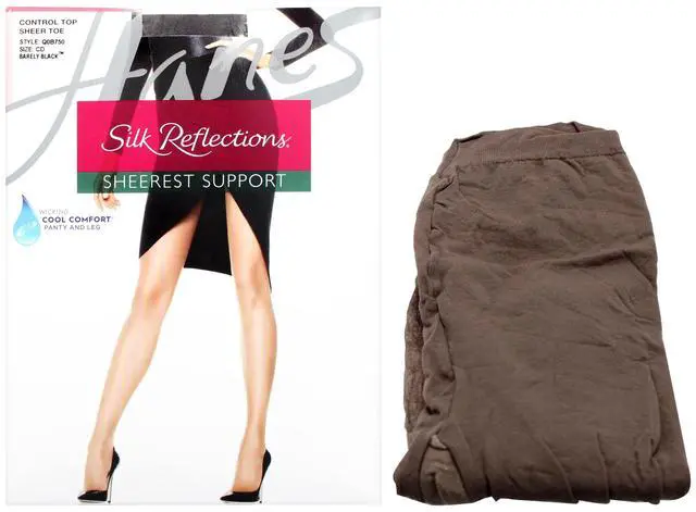 • Silk Reflections Sheerest Support Control Top Sheer Toe - Q0B750 Barely Black by Hanes for Women - 1 Pair Pantyhose (CD)