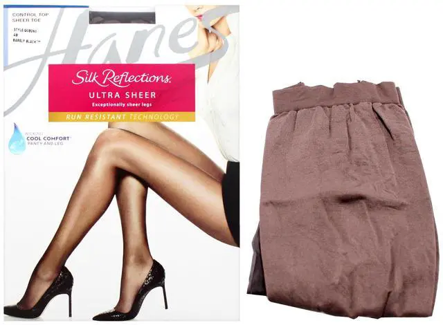 Silk Reflections Ultra Sheer Control Top Sheer Toe - Q0B260 Barely Black by Hanes for Women - 1 Pair Pantyhose (AB)