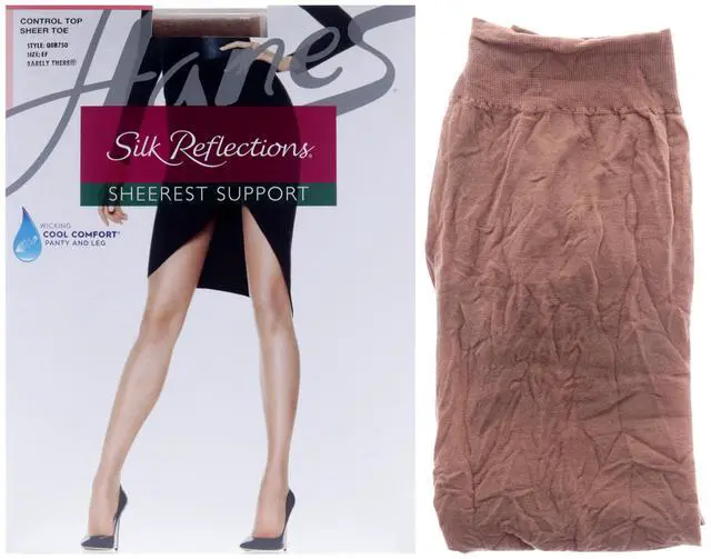 • Silk Reflections Sheerest Support Control Top Sheer Toe - Q0B750 Barely There by Hanes for Women - 1 Pair Pantyhose (EF)