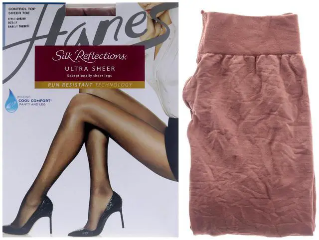 • Silk Reflections Ultra Sheer Control Top Sheer Toe - Q0B260 Barely There by Hanes for Women - 1 Pair Pantyhose (EF)