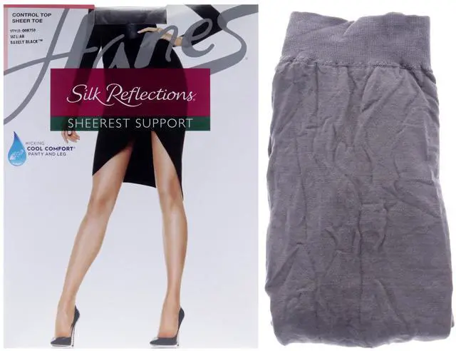 • Silk Reflections Sheerest Support Control Top Sheer Toe - Q0B750 Barely Black by Hanes for Women - 1 Pair Pantyhose (AB)