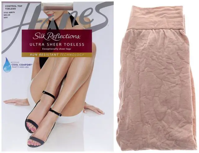 Silk Reflections Ultra Sheer Control Top Toeless - Q0B376 Buff by Hanes for Women - 1 Pair Pantyhose (GH)
