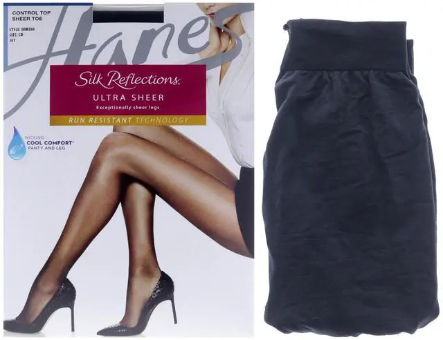 Silk Reflections Ultra Sheer Control Top Sheer Toe - Q0B260 Jet by Hanes for Women - 1 Pair Pantyhose (CD)