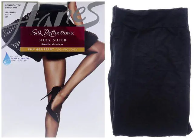 • Silk Reflections Silky Sheer Control Top Sheer Toe - Q0A925 Jet by Hanes for Women - 1 Pair Pantyhose (CD)