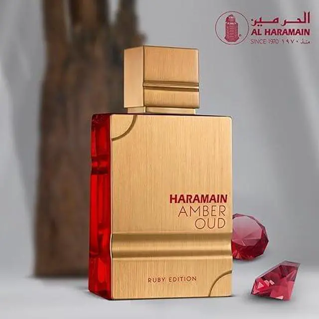 Amber Oud Ruby Edition by Al Haramain Perfumes is a Unisex fragrance launched in 2022, featuring a unique blend of saffron and bitter almond in its top notes for a bold, spicy, and slightly nutty opening.