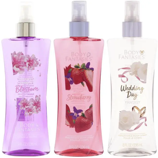 Body Fantasies Kit by Body Fantasies for Women - 3 Pc Kit 8oz Body Spray - Signature Japanese Cherry Blossom, 8oz Body Spray - Strawberry Fantasy, 8oz Body Spray - Signature Wedding Day Fragrance