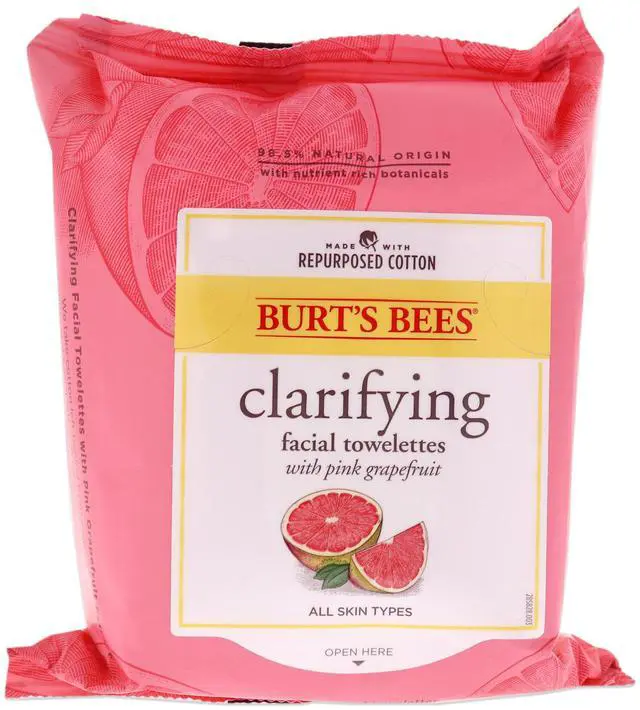 Facial Cleansing Towelettes - Pink Grapefruit by Burts Bees for Unisex - 30 Count Towelettes