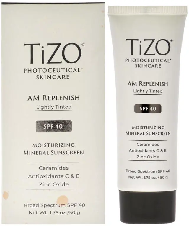 TIZO® AM Replenish is formulated with Zinc Oxide, Ceramides, and powerful Antioxidants (Vitamins C and E). Zinc Oxide protects against UV damage and Ceramides help restore the lipid layer.