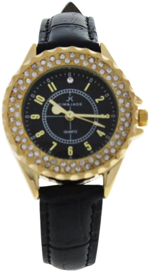 2033L-GBLBL Gold/Black Leather Strap Watch by Kim & Jade for Women - 1 Pc Watch