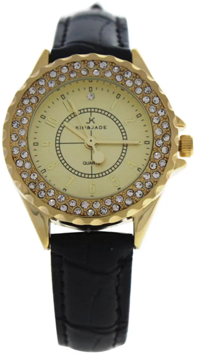 2033L-GBLG Gold/Black Leather Strap Watch by Kim & Jade for Women - 1 Pc Watch