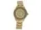 This watch features with stainless steel back, water resistance, Quartz movement. Bracelet style strap and has a Mineral glass gold dial. Mineral glass ultra resistant. Diamond accents are featured on the bezel. Dial Type is Analog. Round case shape.