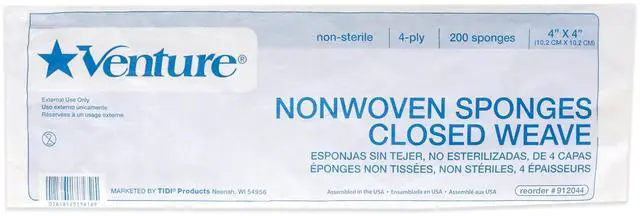 Venture Non-Woven 4-Ply Closed Weave Sponge Non-Sterile by Tidi for Unisex - 200 Count Sponge