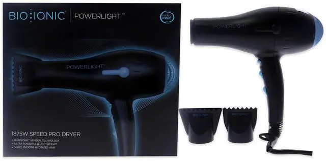 Bio Ionics PowerLight Pro Dryer is both powerful and light! Nanoionic Minerals infused into the barrel of the dryer emit natural negative ions that break down water molecules. The micronized water molecules penetrate hair for extreme hydration.