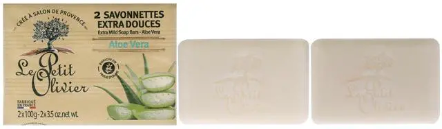 Extra Mild Soap Bars - Aloe Vera by Le Petit Olivier for Men - 2 x 3.5 oz Soap