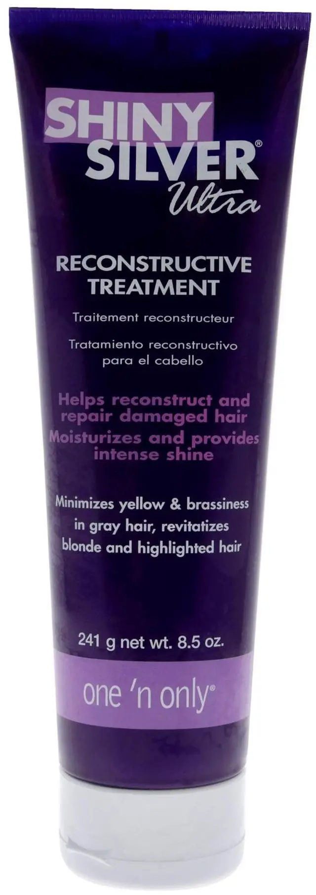 With our Shiny Silver Reconstructive Treatment, instantly restore your hair's brightness of blonde, bleached, or highlighted hair. This restorative product minimizes yellow and brassy tones while repairing damaged hair as it moisturizes and provides intense shine. Improve the look and feel of dry, brittle hair with this miracle product. Enhances blonde hair and revitalizes bleached and highlighted hair.
