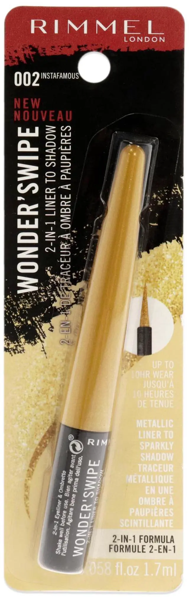 Breakthrough 2-in-1 formula: a bold metallic liner that can be transformed into a sparkly shadow with one swipe. 16 ultra pigmented shades. Layer and combine the formula to create unique, show-stopping looks.