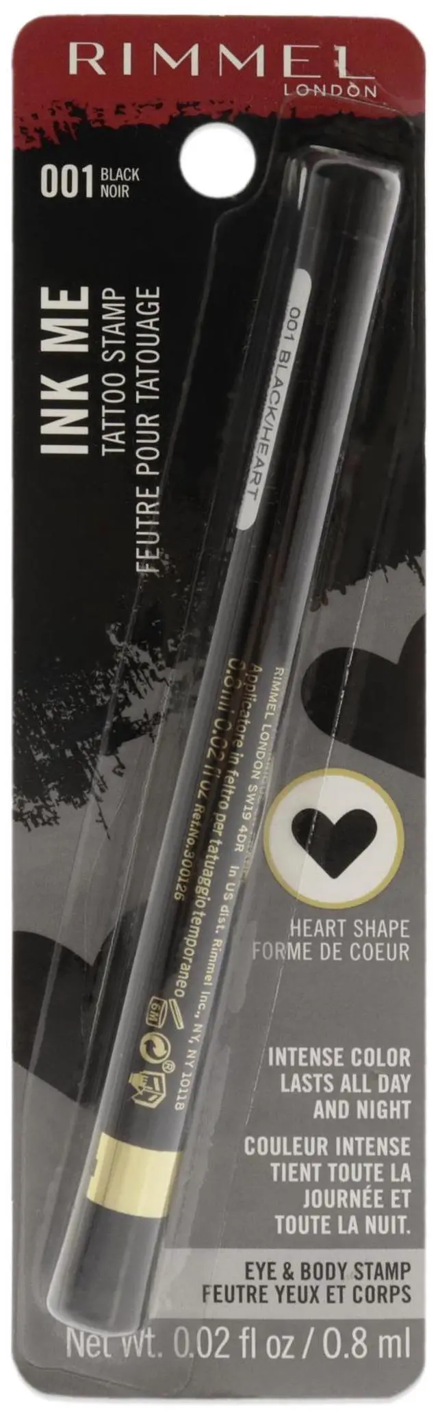 Quick and easy-use black tattoo stamp pens to create your own festive or everyday look for face and body. Intense black ink Heart stamp shape for face and body. Easy to remove. Gently press stamp directly onto dry skin and lift immediately. Store tip down for optimum ink flow. To remove, wash off with soap and warm water. Ideal for use during the festive season or to edge up your everyday look Live the London look.
