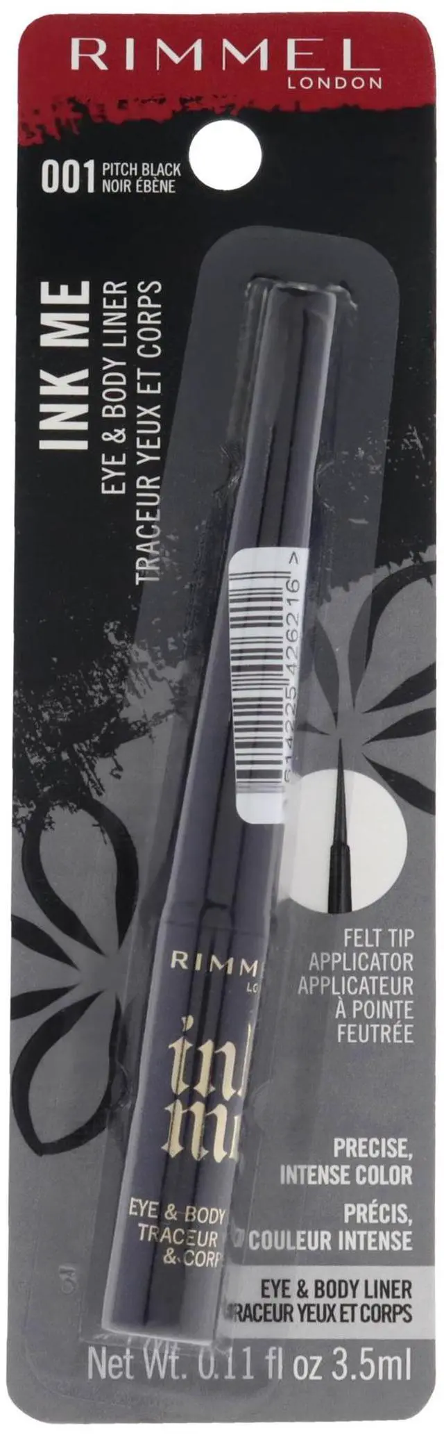 Ink Me Eye and Body Liners. Precise intense line of colour glides on effortlessly, in just one stroke. Transfer and smudge resistant formula so colour stays put for long lasting definition, yet easy to remove. Express your inner artist and create your own eye, face and body art with the entire Ink Me collection, including the Ink Me tattoo stamps and metallic stickers. Suitable for sensitive eyes and contact lens wearers.