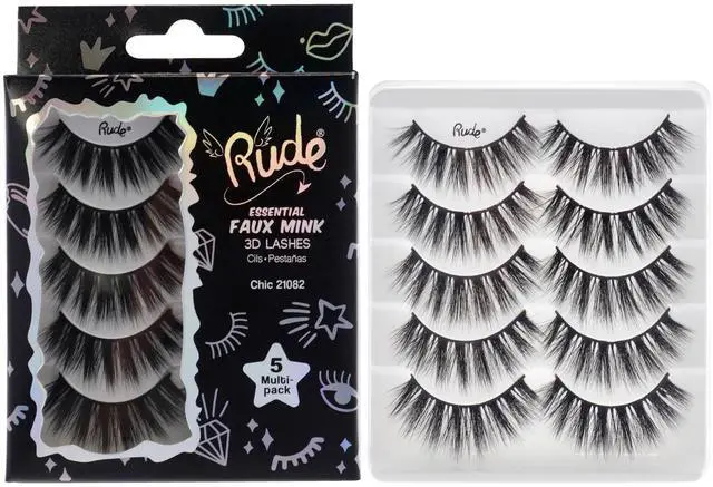 Essential Faux Mink 3D Lashes - Chic by Rude Cosmetics for Women - 5 Pair Eyelashes